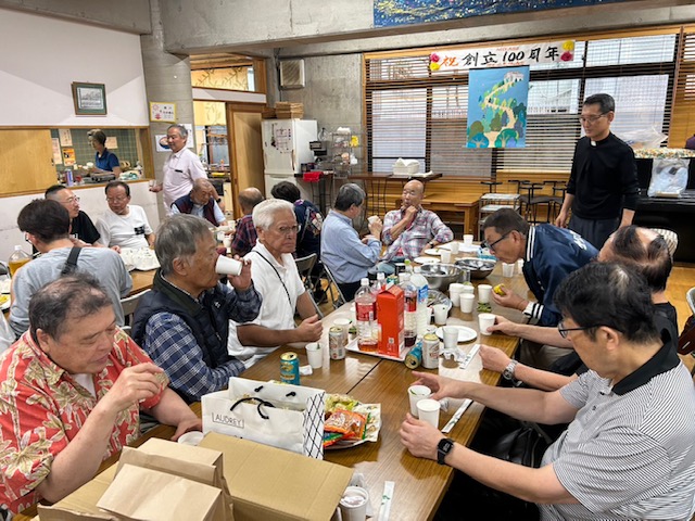 片付け作業終了後はペテロ教会の皆さん、同じく協賛した中野立教会の皆さん、全員で“打上げ会”が開かれ、キム司祭のお祈りで始まり、疲れを忘れる楽しい賑やかな時間を過ごし、聖歌を歌ってお開きとなりました。